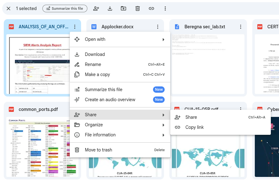 2. This link contains the identifier that we copy and will use in the following command FILE_ID = 1m33yBi9NhfUTfiY5OynaF_1n4yMz26vU