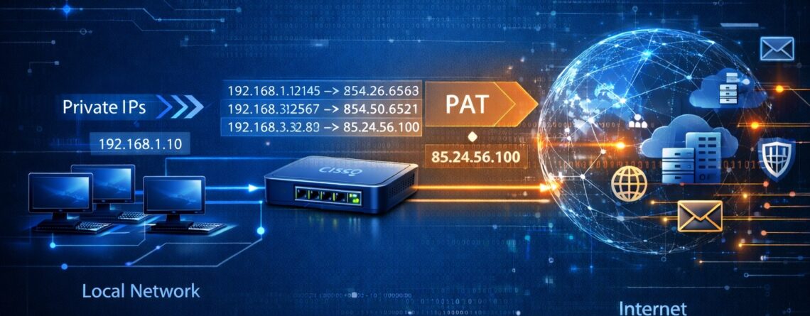 Перетворення адрес портів PAT (так зване NAT з перевантаженням) економить адреси у внутрішньому глобальному пулі, дозволяючи маршрутизатору використати одну внутрішню глобальну адресу для декількох внутрішніх локальних адрес. Іншими словами, одна публічна IPv4-адреса може використовуватися для сотень або...