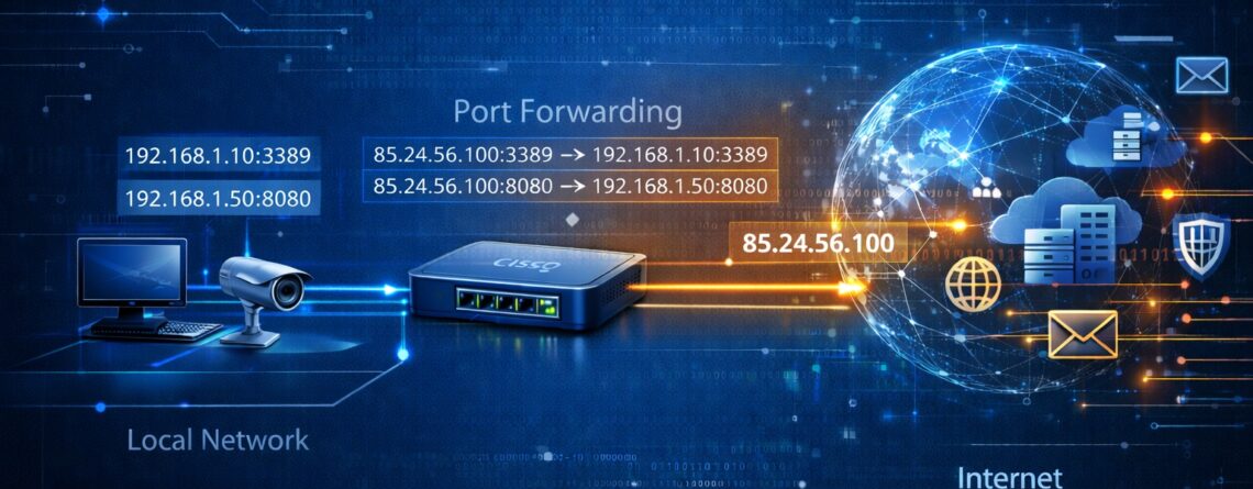 Переадресація портів (іноді називається тунелюванням) — це переадресація мережевого порту від одного вузла мережі на інший вузол. Цей метод дозволяє зовнішнім користувачам зовні досягати порту для частки IPv4-адрес (у локальній мережі), використовуючи маршрутизатор з підтримкою NAT.