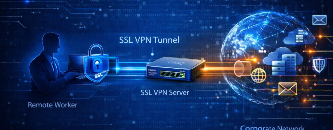 Cisco IOS SSL технологія VPN забезпечує зв’язок віддаленого доступу від майже будь-якого вузлу, що має підключення до мережі Інтернет за допомогою веб-браузеру і його власного шифрування SSL.